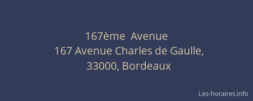 Voici les horaires de 167ème Avenue situé à Bordeaux,