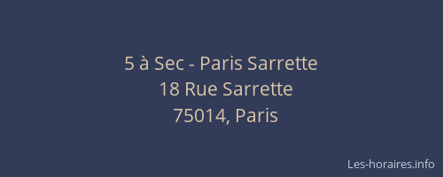 Voici les horaires de 5 à Sec - Sarrette situé à Paris,
