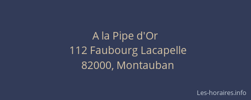 Voici les horaires de A la Pipe d'Or situé à Montauban,