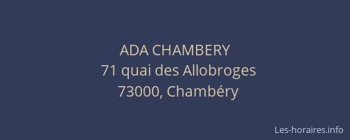 Voici les horaires de ADA CHAMBERY situé à Chambéry,