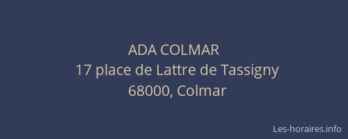Voici les horaires de ADA COLMAR situé à Colmar,