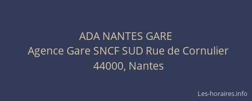 Voici les horaires de ADA NANTES GARE situé à Nantes,
