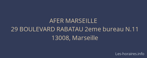Voici les horaires de AFER MARSEILLE situé à Marseille 8ème,