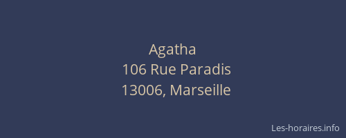 Voici les horaires de Agatha situé à Marseille 6ème,