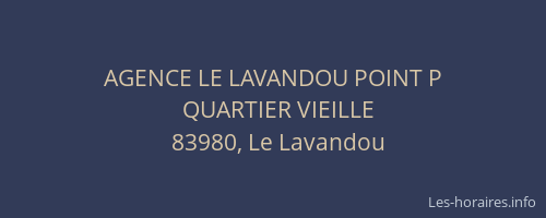 Voici les horaires de AGENCE LE LAVANDOU POINT P situé à Le Lavandou,