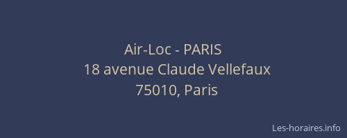 Voici les horaires de Air-Loc - PARIS situé à Paris 10ème,