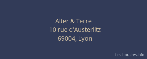 Voici les horaires de Alter & Terre situé à Lyon 4ème,
