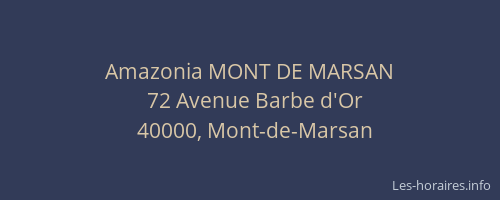 Voici les horaires de Amazonia MONT DE MARSAN situé à Mont-de-Marsan,