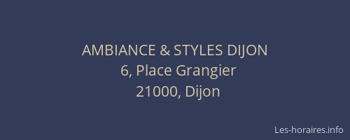 Voici les horaires de AMBIANCE & STYLES DIJON situé à Dijon,