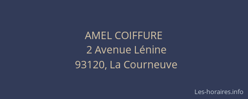 Voici les horaires de AMEL COIFFURE situé à La Courneuve,