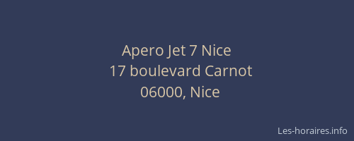 Voici les horaires de Apero Jet 7 situé à Nice,