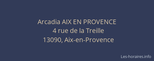 Vous pouvez renseigner les horaires Arcadia AIX EN PROVENCE situé à Aix-en-Provence,