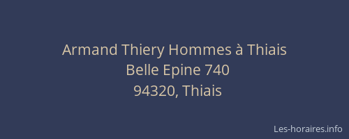 Voici les horaires de Armand Thiery Hommes à situé à Thiais,