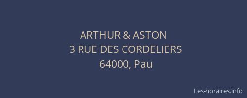 Voici les horaires de ARTHUR & ASTON situé à Pau,