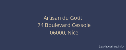 Voici les horaires de Artisan du Goût situé à Nice,