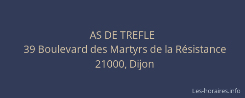 Voici les horaires de AS DE TREFLE situé à Dijon,