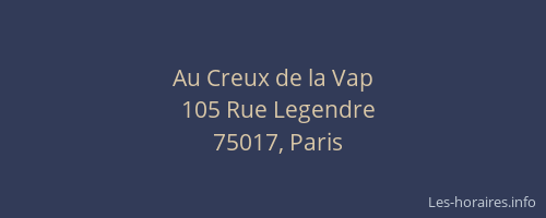 Voici les horaires de Au Creux de la Vap situé à Paris 17ème,