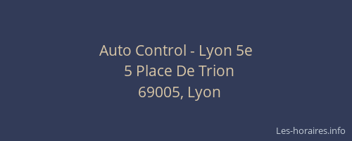 Voici les horaires de Auto Control - 5e situé à Lyon,