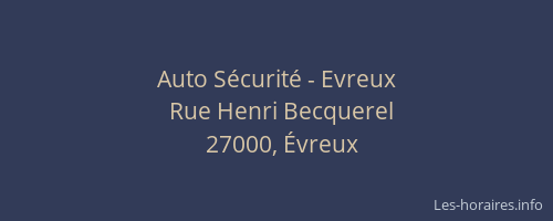 Voici les horaires de Auto Sécurité - Evreux situé à Évreux,