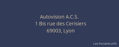 Voici les horaires de Autovision A.C.S. situé à Lyon 3ème,
