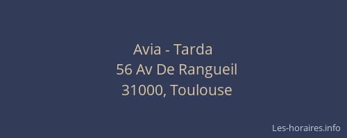 Voici les horaires de Avia - Tarda situé à Toulouse,