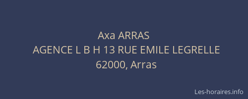 Voici les horaires de Axa ARRAS situé à Arras,