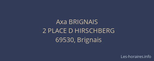 Voici les horaires de Axa BRIGNAIS situé à Brignais,