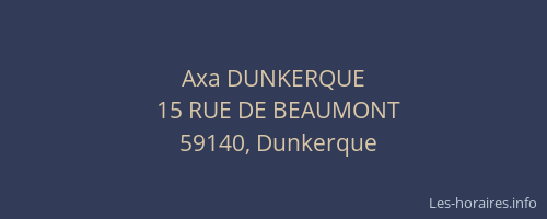 Voici les horaires de Axa DUNKERQUE situé à Dunkerque,