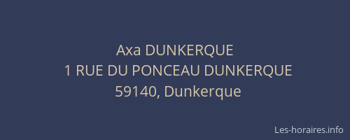Voici les horaires de Axa DUNKERQUE situé à Dunkerque,