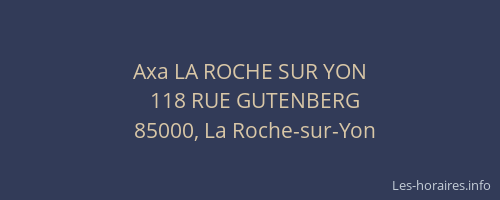 Voici les horaires de Axa LA ROCHE SUR YON situé à La Roche-sur-Yon,