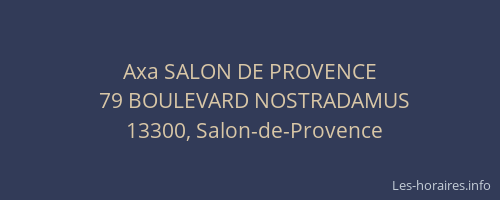 Voici les horaires de Axa SALON DE PROVENCE situé à Salon-de-Provence,