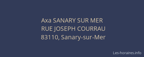Voici les horaires de Axa SANARY SUR MER situé à Sanary-sur-Mer,