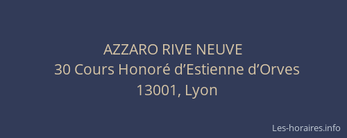 Voici les horaires de AZZARO RIVE NEUVE situé à Lyon 1er,