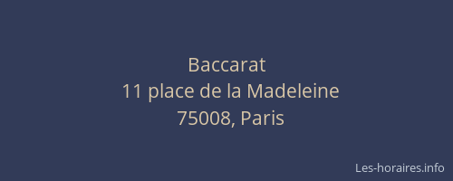 Voici les horaires de Baccarat situé à Paris 8ème,