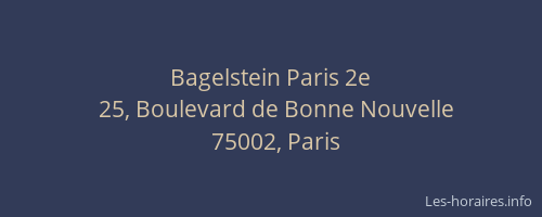 Voici les horaires de Bagelstein 2e situé à Paris,