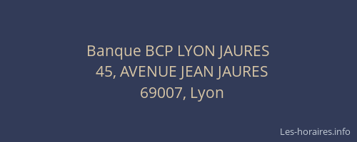 Voici les horaires de Banque BCP LYON JAURES situé à Lyon,