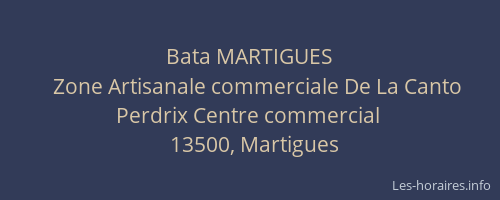 Voici les horaires de Bata MARTIGUES situé à Martigues,