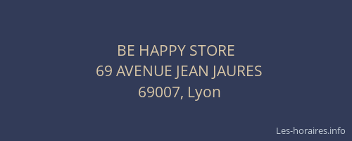 Voici les horaires de BE HAPPY STORE situé à Lyon 7ème,