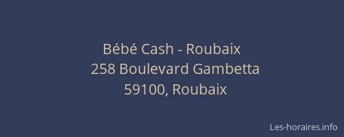 Voici les horaires de Bébé Cash - situé à Roubaix,