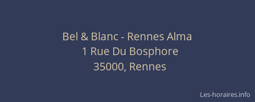 Voici les horaires de Bel & Blanc - Alma situé à Rennes,