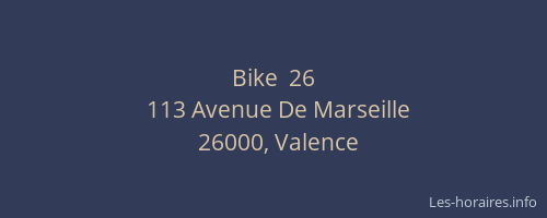 Voici les horaires de Bike 26 situé à Valence,