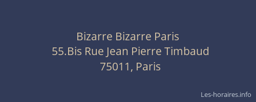 Voici les horaires de Bizarre Bizarre situé à Paris 11ème,
