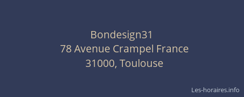 Vous pouvez renseigner les horaires Bondesign31 situé à Toulouse,