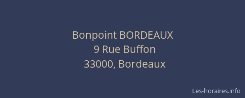 Voici les horaires de Bonpoint BORDEAUX situé à Bordeaux,