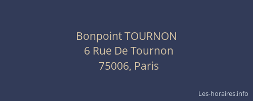 Voici les horaires de Bonpoint TOURNON situé à Paris 6ème,