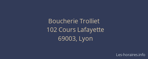 Voici les horaires de Boucherie Trolliet situé à Lyon 3ème,
