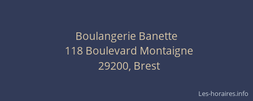Voici les horaires de Boulangerie Banette situé à Brest,