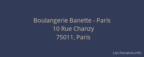 Voici les horaires de Boulangerie Banette - situé à Paris 11ème,