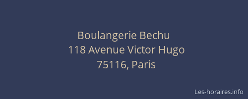 Voici les horaires de Boulangerie Bechu situé à Paris 16ème,