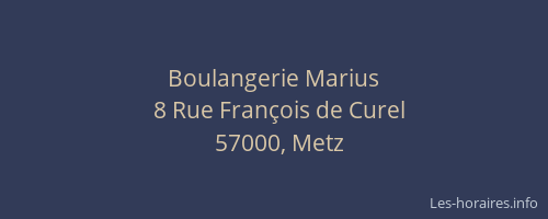 Voici les horaires de Boulangerie Marius situé à Metz,